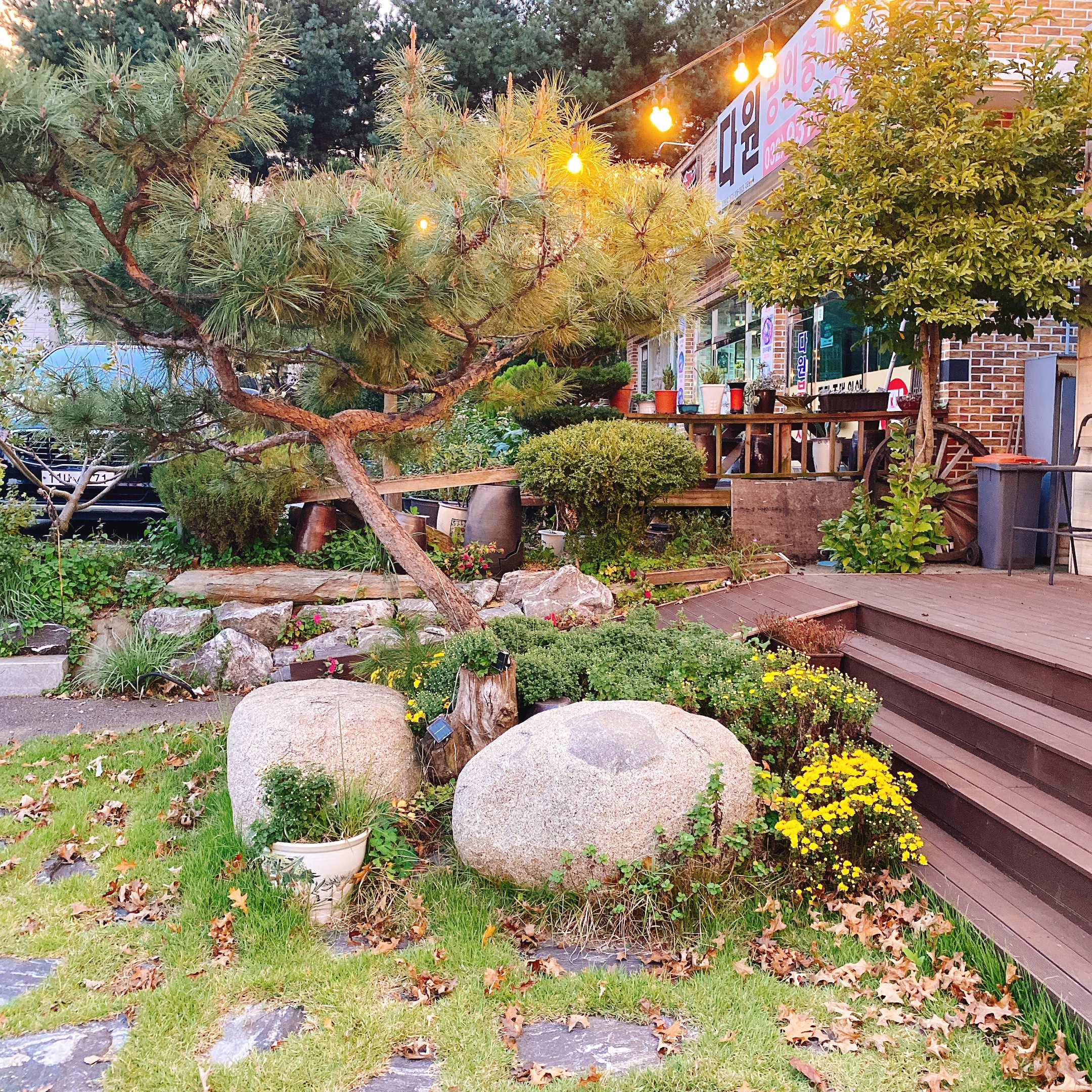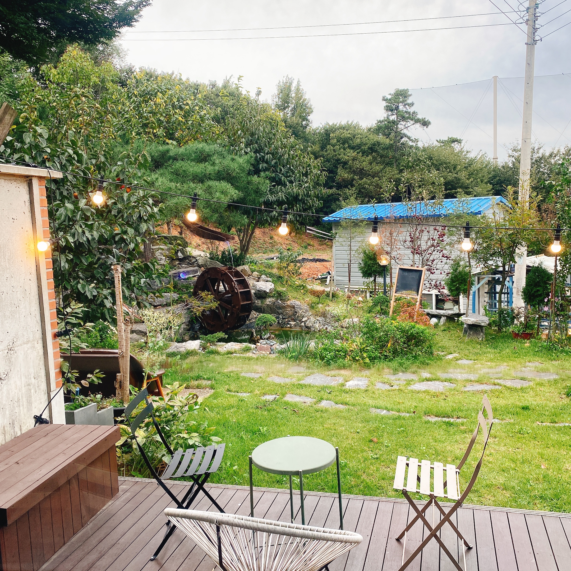 섬아이 카페는 개인 전용 정원이 있습니다. 날씨가 좋을때는 신선한 공기와 함께 빙글빙글 돌아가는 물레방아를 바라보며 힐링을 느껴보는 것도 좋을 것 같습니다.