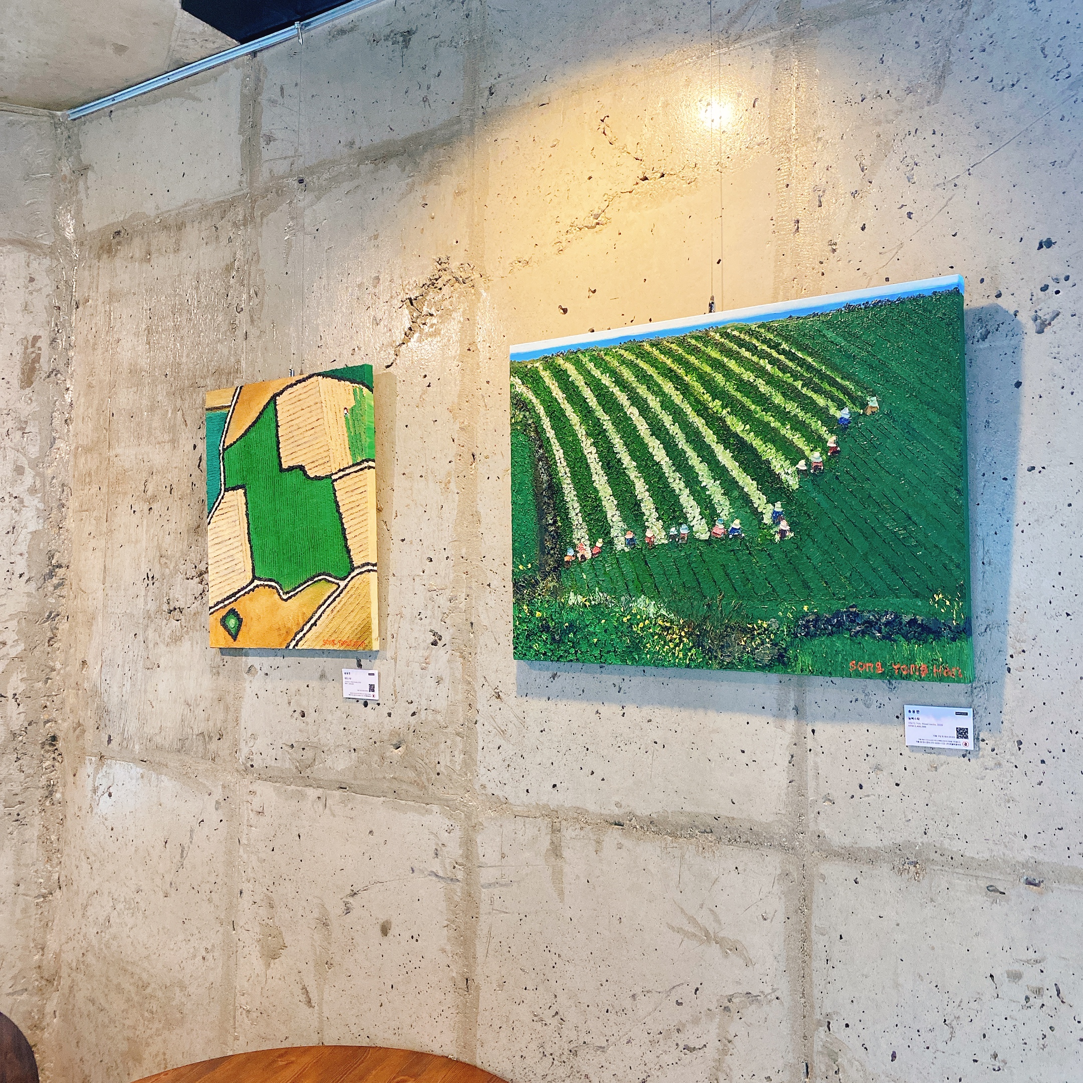 카페 곳곳에 송용한 작가의 작품들이 전시되어있습니다. 제주도에 대한 아름다운 풍경들이 인상적이었습니다.