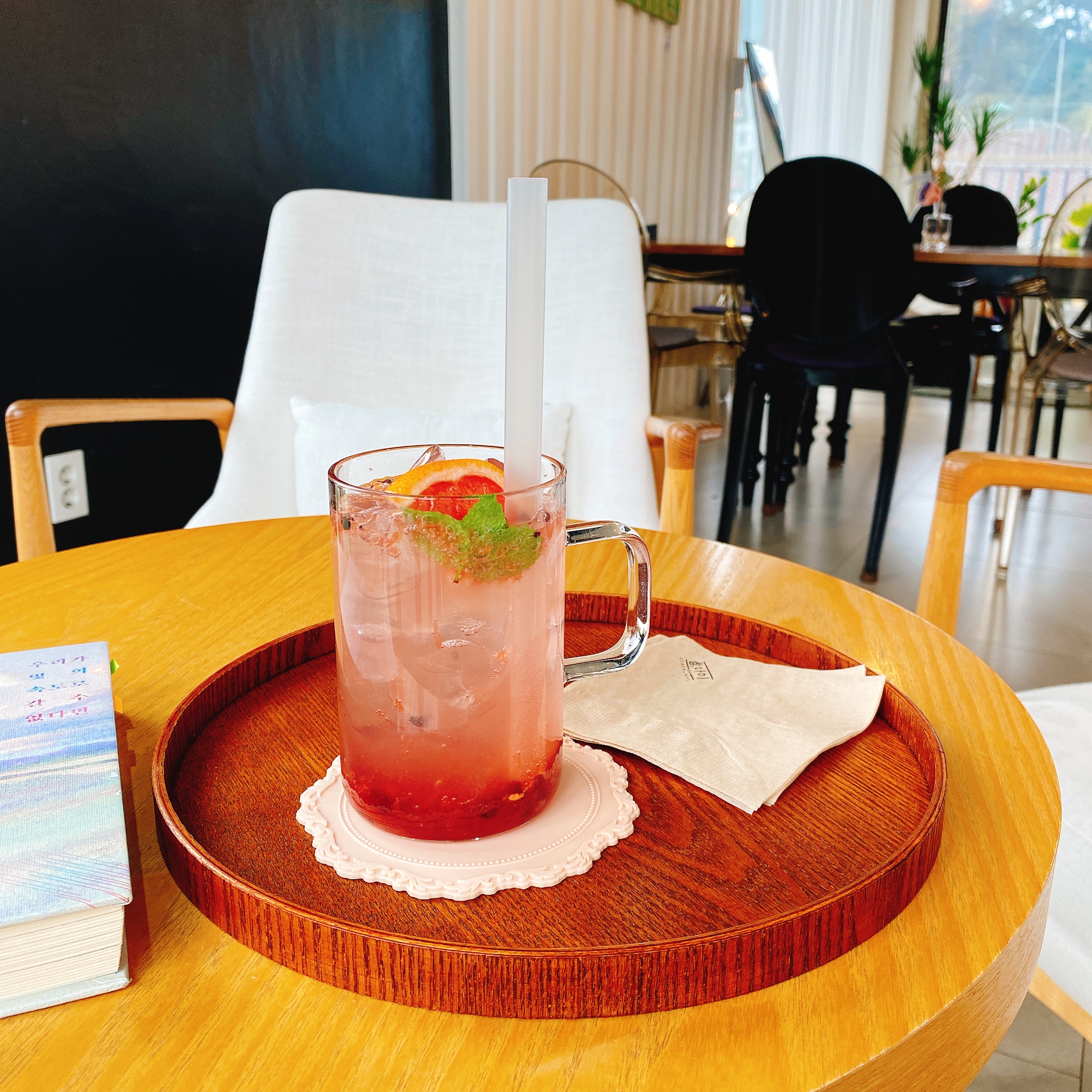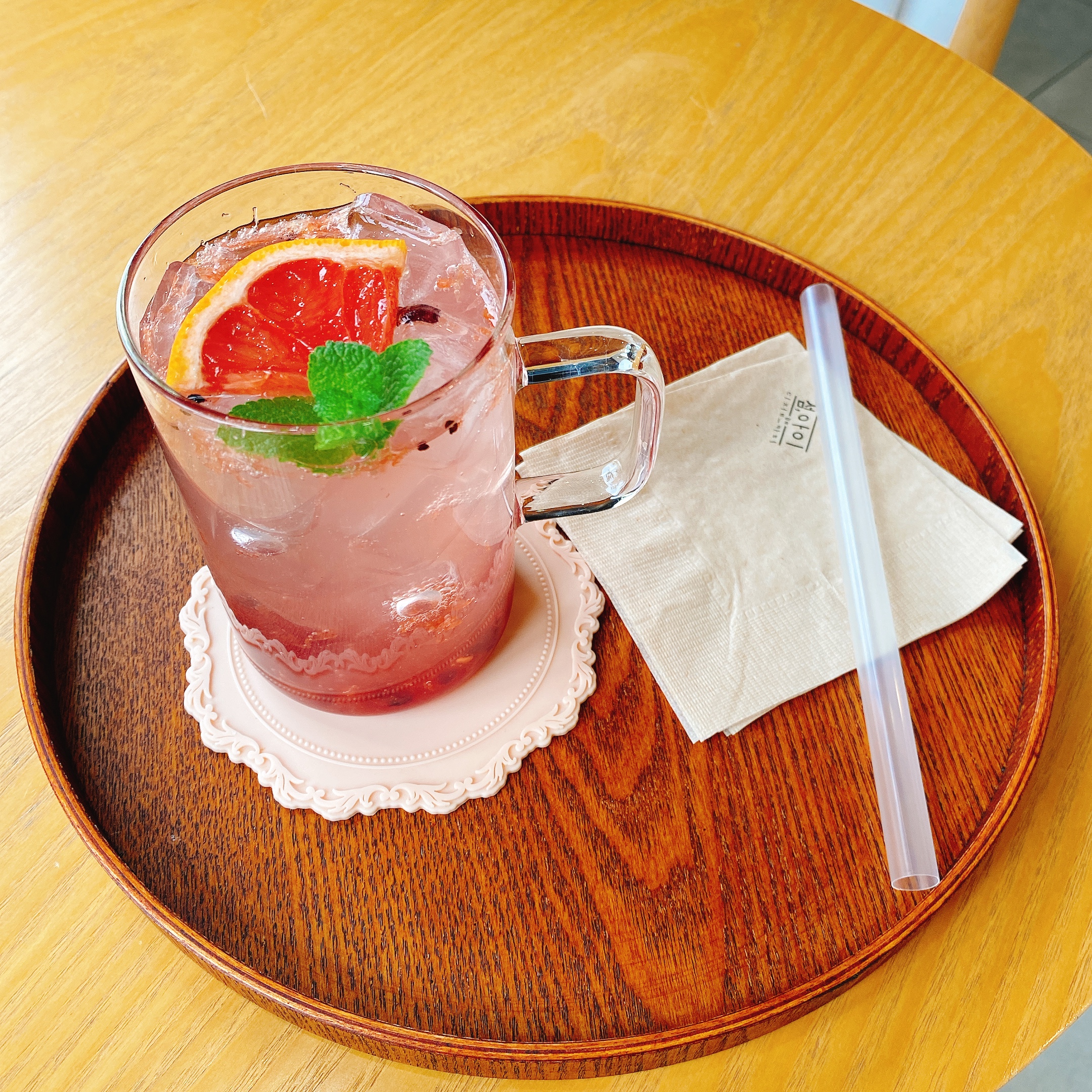 집에서 식사와 커피를 해결했기에 자몽오미자에이드를 주문해봤습니다. 달달하고 시원하니 맛있었어요.