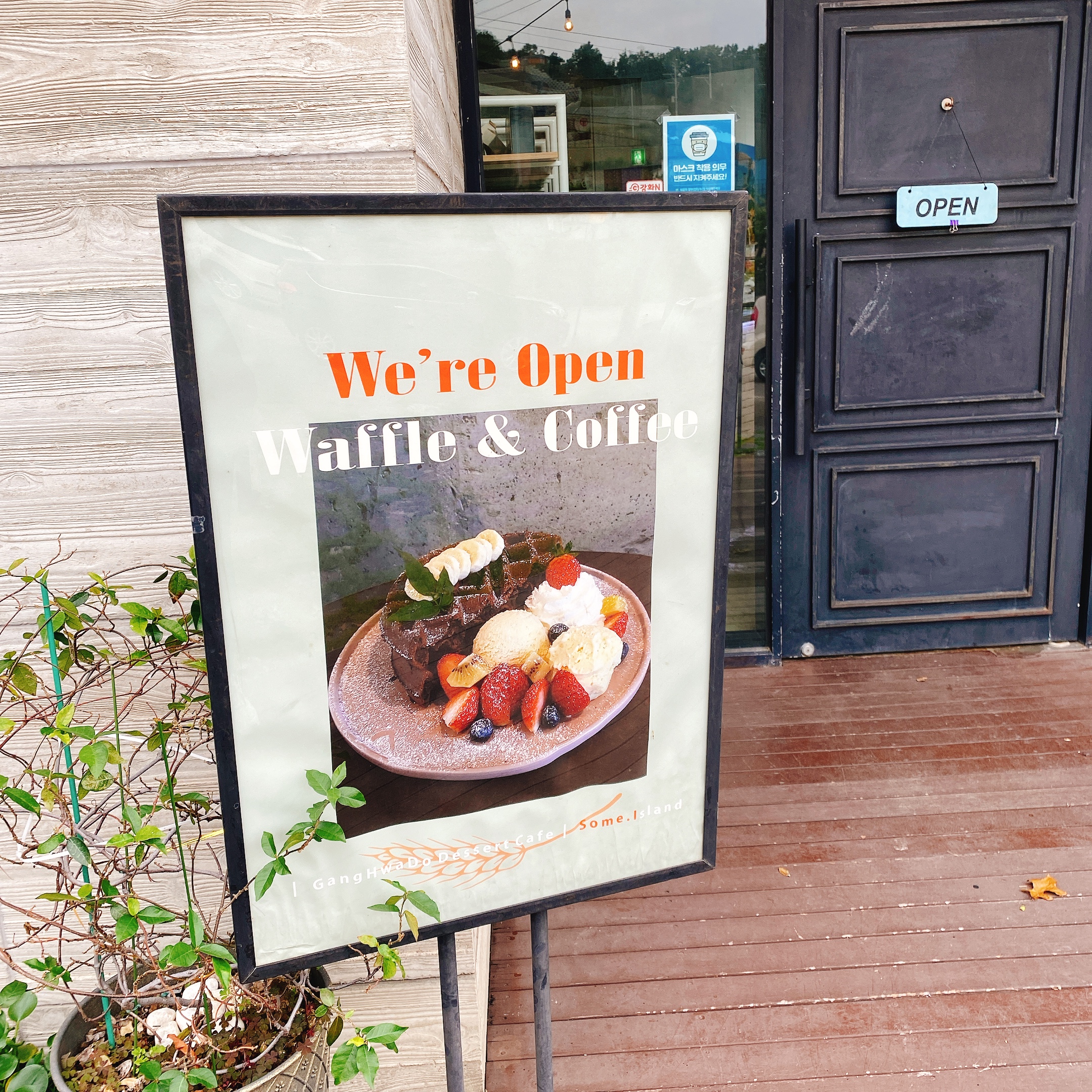 고객들의 눈에 잘 띌 수 있도록 입간판도 큼직하게 설치 해놨습니다. 총 10대정도 주차할 수 있는 주차공간이 있습니다. 많은 관광객들이 유입되는 강화도에 상대적으로 주차공간이 적다고 느껴질 수는 있으나, 주변에 워낙 카페들이 많기 때문에 비교적 넉넉한 편입니다.