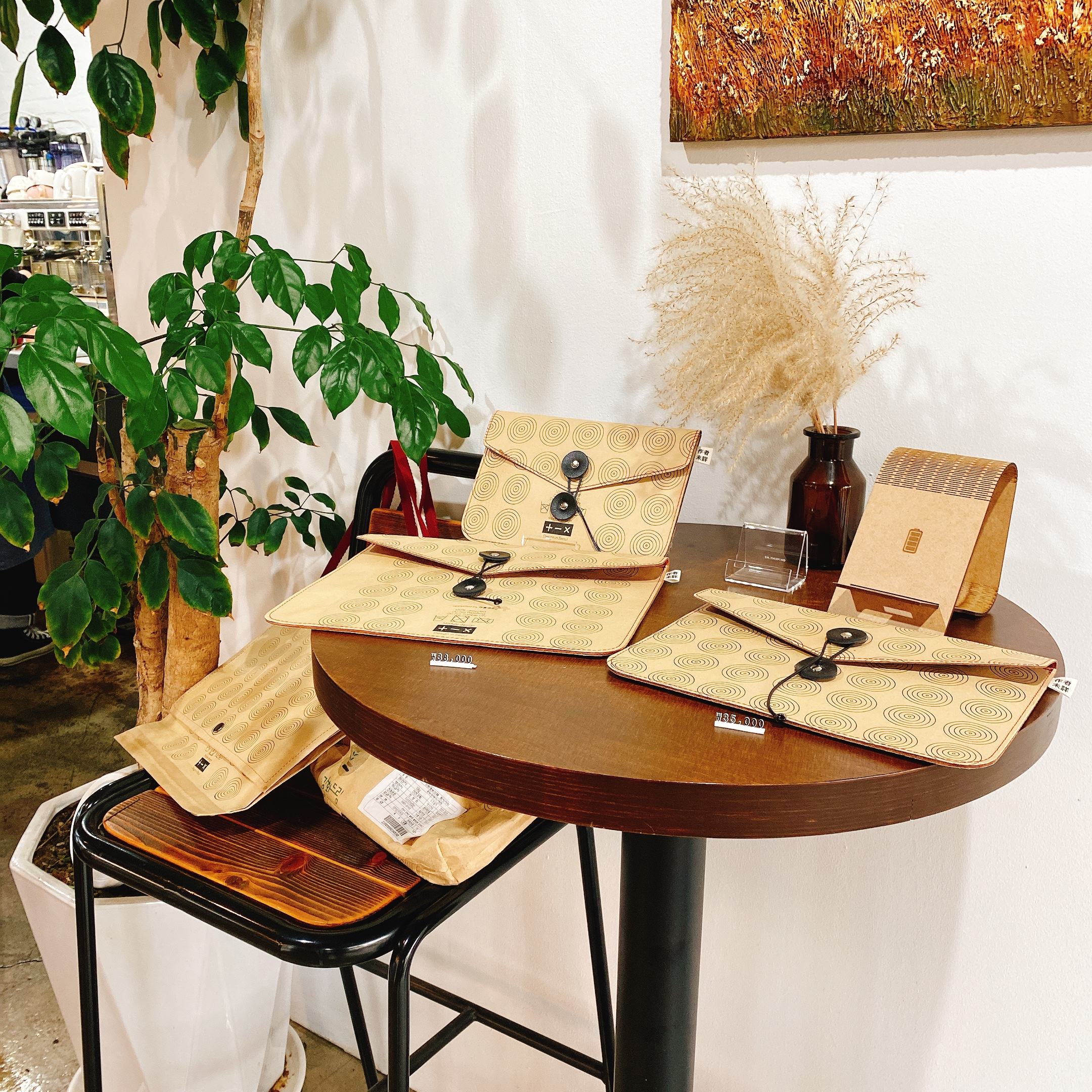 이 굿즈들은 강화도 쌀 포장지를 이용하여 만든 업사이클링 제품들이에요.