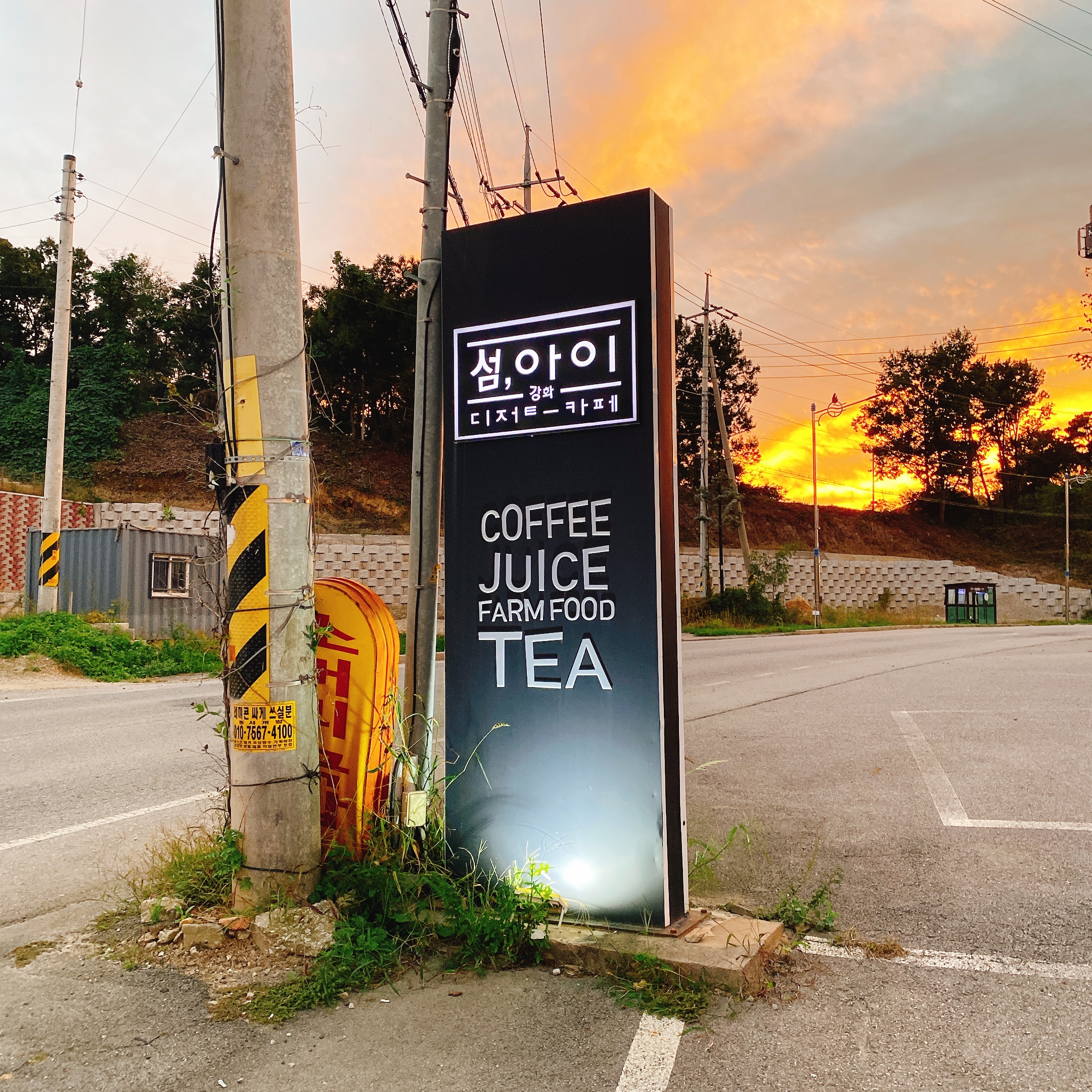 고객들의 눈에 잘 띌 수 있도록 입간판도 큼직하게 설치 해놨습니다. 총 10대정도 주차할 수 있는 주차공간이 있습니다. 많은 관광객들이 유입되는 강화도에 상대적으로 주차공간이 적다고 느껴질 수는 있으나, 주변에 워낙 카페들이 많기 때문에 비교적 넉넉한 편입니다.