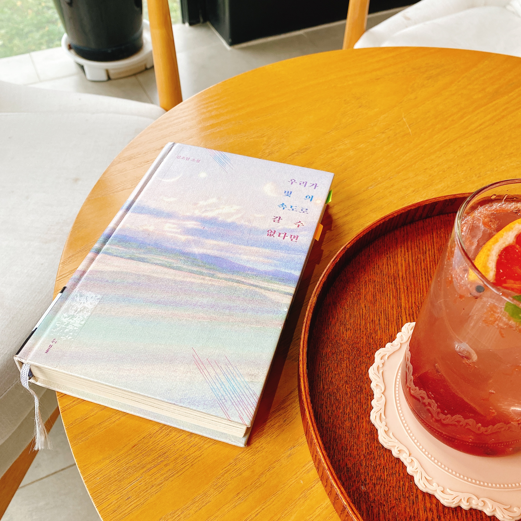 자몽오미자에이드와 함께 오늘은 김초엽작가의 우리가 빛의 속도로 갈 수 없다면 이라는 책을 읽을거에요.