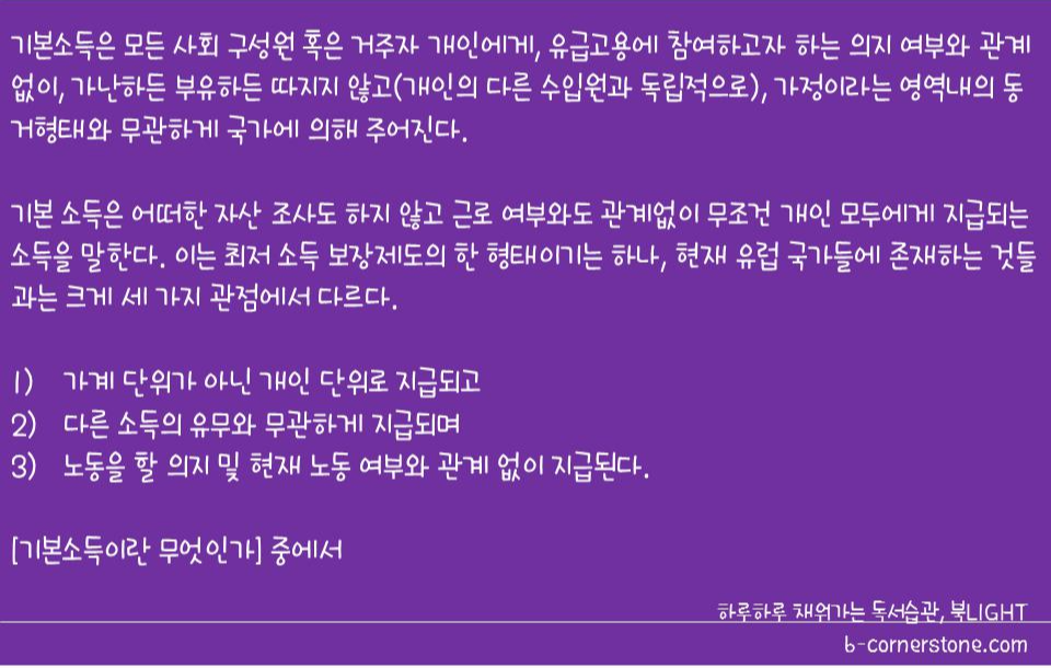 이 포스팅은 북리뷰입니다. 개인의 정치사상과는 관계없는 글이며 특정 정치인의 논란들도 철저히 배제시키고 작성하였습니다. 필자는 한 인물의 어린시절과 정치인이 된 그가 주장하고자 하는 기본소득의 연관성을 주제로 이 포스팅을 작성하고자 하였습니다.