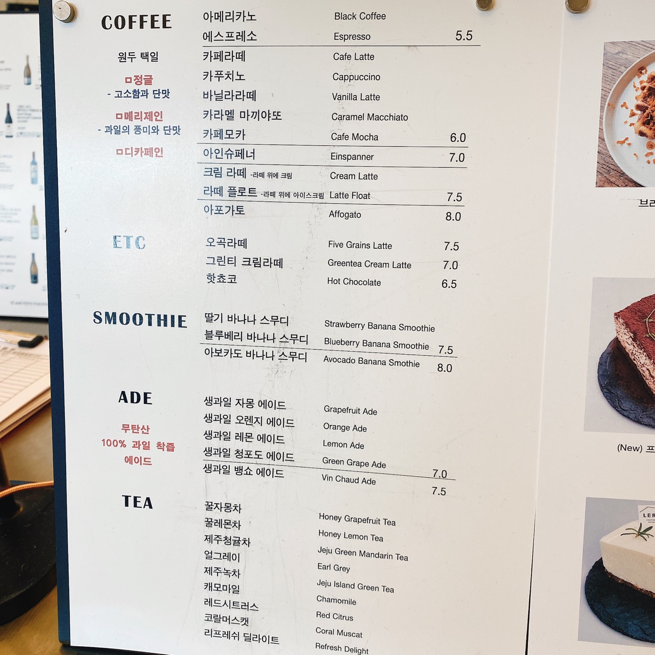 4. 동탄 르레브 카페 메뉴