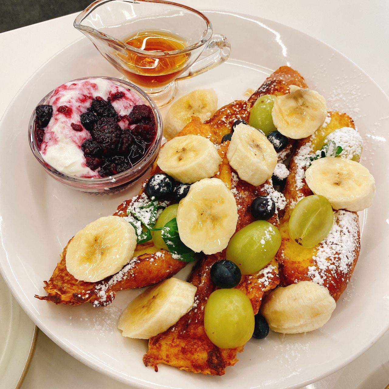 오랜만에 만난 친구와 브런치를 함께 했습니다. 오픈 샌드위치와 프렌치토스트를 주문하였습니다. 프렌치토스트에 메이플 시럽과 블루베리 요거트를 곁들여서 기호에 맞게 딥핑 하시면 됩니다. 필자의 친구는 정글을 저는 메리제인 커피를 주문하였고 둘 다 만족스러운 시간을 보냈습니다.