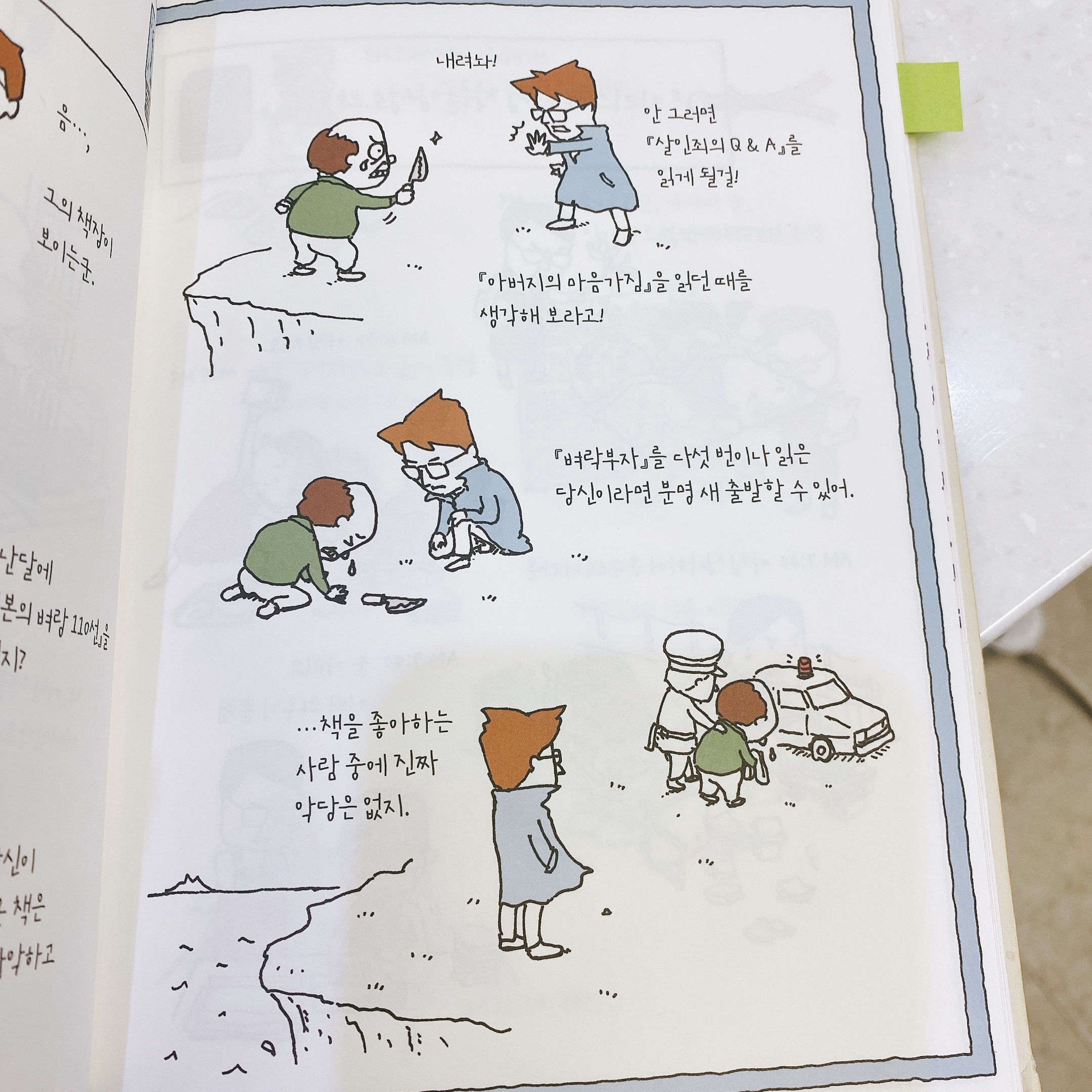 있으려나 서점은 바로 그런 책입니다. 필자는 이 책을 한장한장 넘겨가며 이야기의 엉뚱함에 그리고 귀여움에 함박웃음을 짓곤 했습니다. 삶의 의미를 알기위한 책도 좋지만 가끔은 이런 소소한 이야기를 접하며 머리를 식히는 시간을 가져보는 것도 좋은 방법입니다. 인생에는 정답이라는 것은 없고 책 또한 정답은 없으니까요.