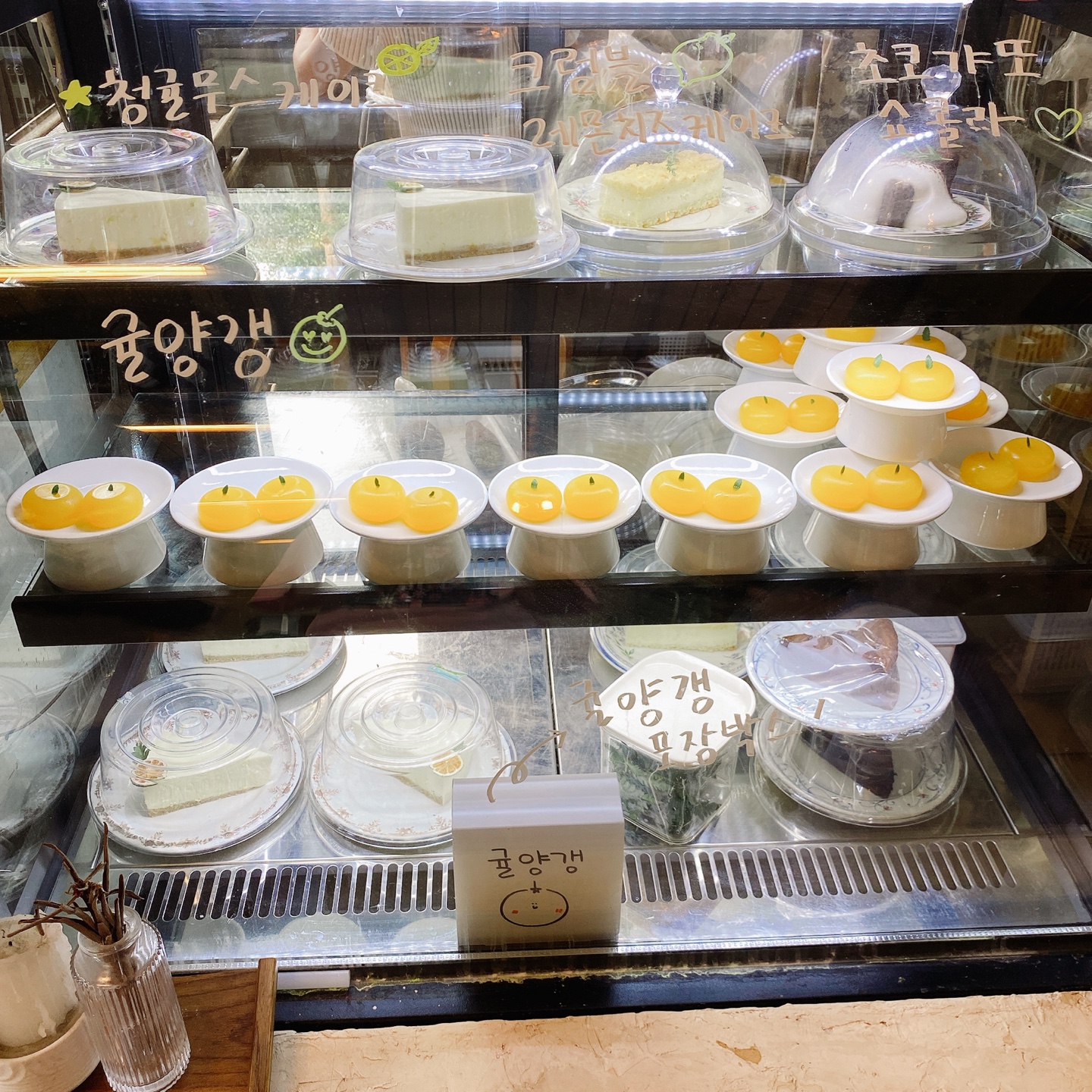 제주 서귀포시 귤밭돌창고 개조카페 귤꽃다락의 시그니처 메뉴는 당연 귤로 만든 메뉴입니다. 귤차, 귤라떼, 귤에이드등 귤로가득한 음료를 포함하여 귤양갱과 청귤무스케이크 또한 빼놓을 수 없는 이곳의 자랑입니다. 다른 식재료를 제외하고는 귤의 원산지는 귤꽃다락 카페에서 자라는 귤로 만들어진것이라고 합니다.
