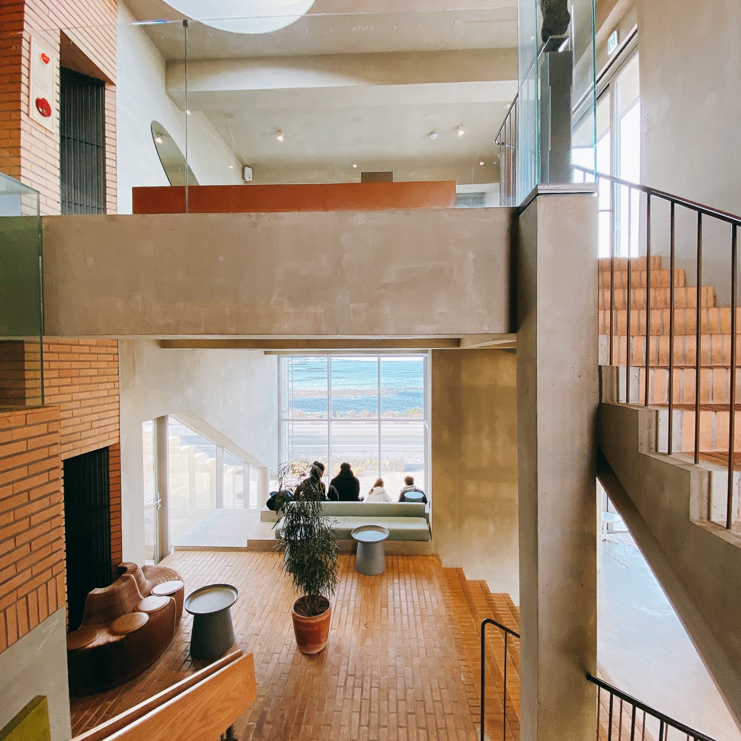 주말에 찾아온 터라 방문객들이 드문 2층으로 자리를 잡았습니다. 오른카페가 오션뷰카페이다 보니 대부분의 테이블들이 바다를 바라볼 수 있게끔 만들어진 구조입니다. 1층은 바다를 바라볼 수 있는 테이블과 자신의 업무나 함께하는 사람들끼리 서로 몰두할 수 있는 공간으로 나뉘었다는 것을 금방 알아차릴 수 있었습니다. 하지만 2층은 테이블과 의자가 난해하여 어떻게 자리 잡고 앉아야 할지 혼란스러워하는 사람들을 쉽게 발견할 수 있었고 필자 역시 비슷한 느낌을 받았습니다.