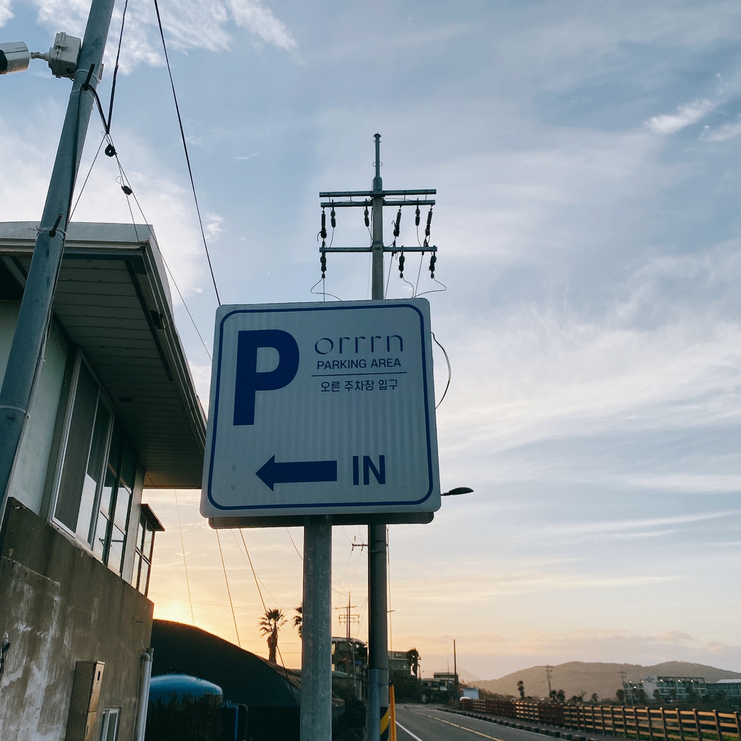 제주 성산 오조포구 근처 오션뷰카페 오른은 전용 주차장을 가지고 있습니다. 성산바다를 바라보며 해안도로를 따라 들어오다 보면 육지냄새가 풀풀 나는(오른 카페 사장님의 정감 가는 표현) 노출 콘크리트에 큼지막하게 ORRRN이라는 팻말이 보이면서 주차장 표지판을 쉽게 찾을 수가 있습니다. 주차공간은 꽤 넓은 편이며 바닥이 시멘트로 되어있어 주차하기에도 무척 편합니다.