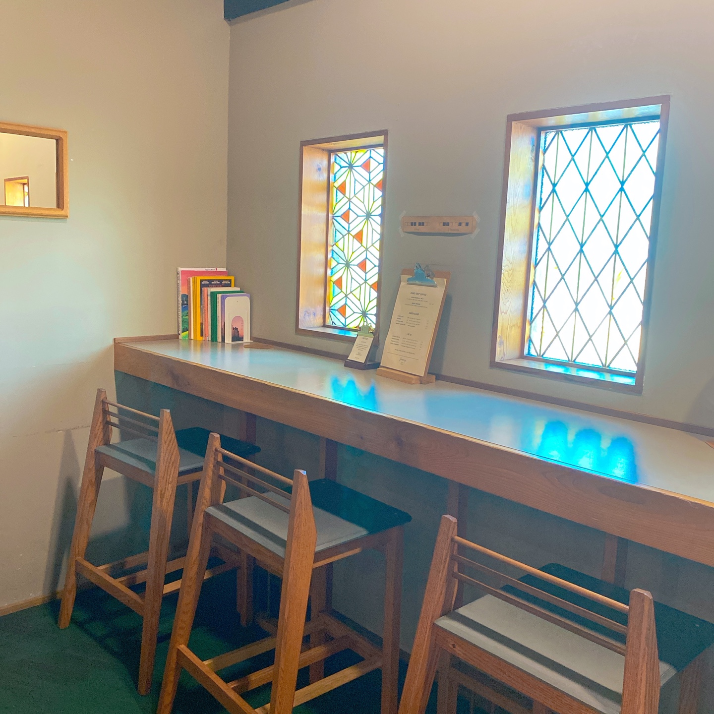 제주 애월 제레미카페의 테이블 규모는 10명이 남짓한 자리로 마련되어 있으며 그로인해 방문객들마다 자신만의 프라이빗한 공간으로 여유를 즐길 수 있다는 점입니다. 전체적으로 브라운톤의 원목 가구들을 배치하고 유리창에 브라운톤과 잘 어울리는 색상의 시트지를 붙여서 따뜻한 분위기를 조성하였습니다.
