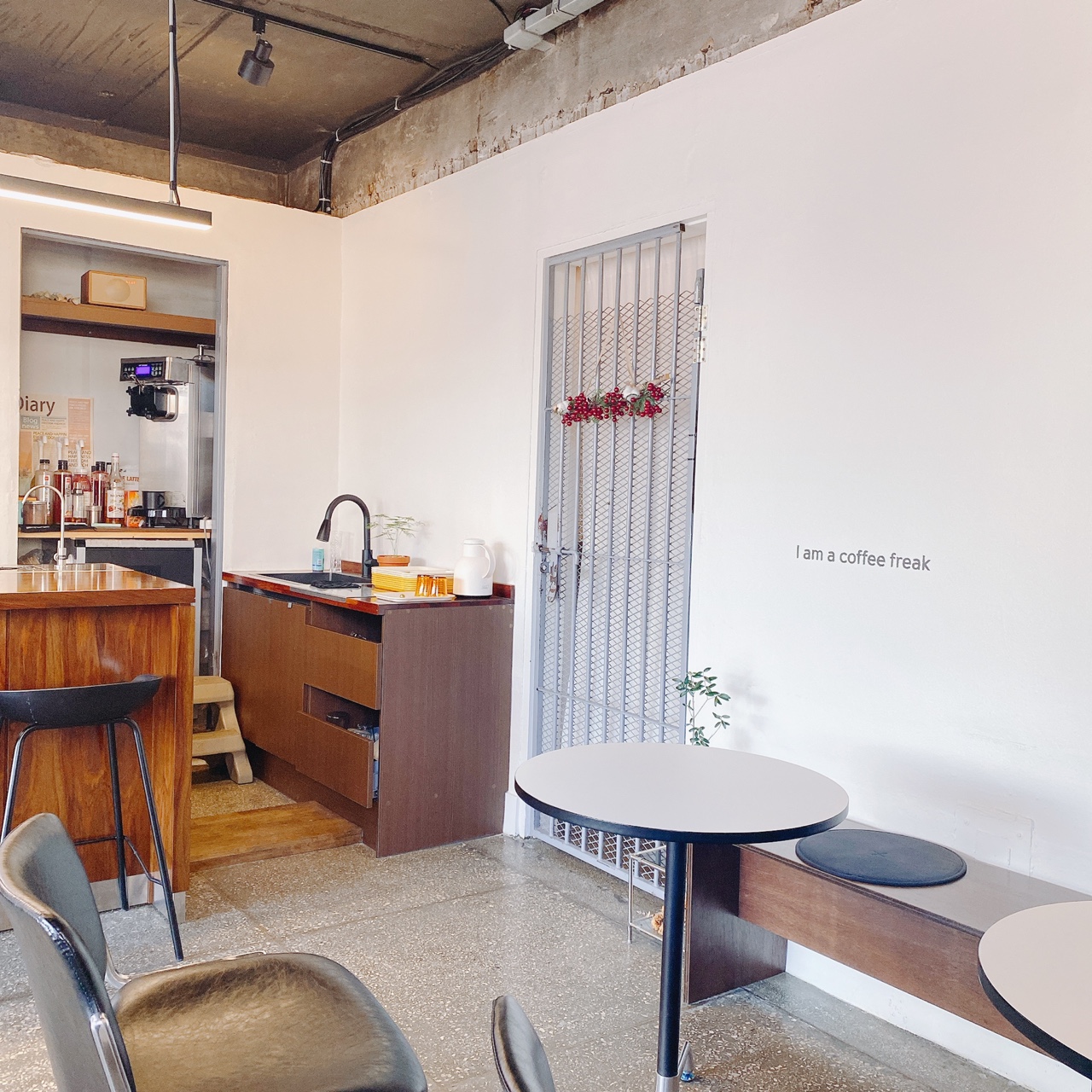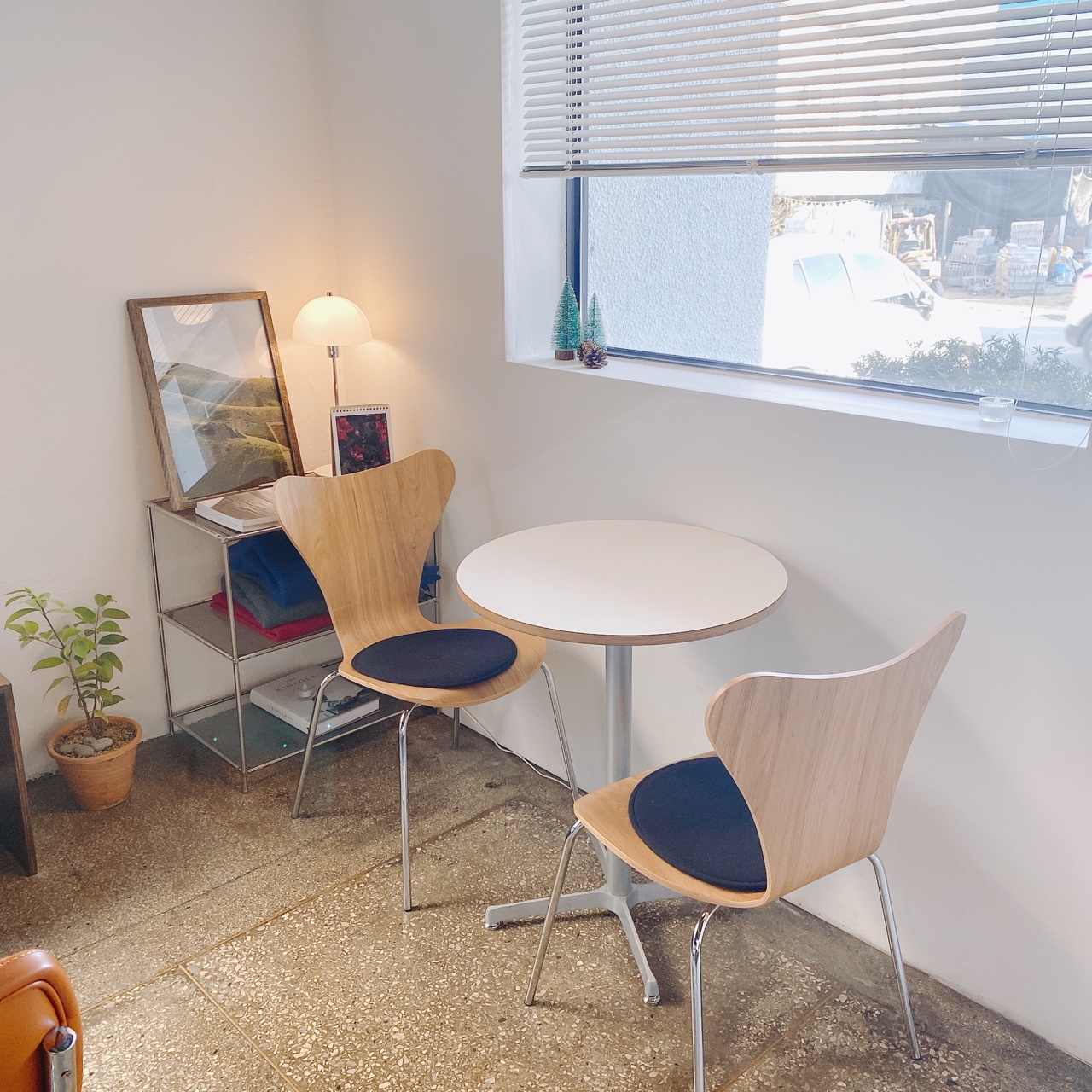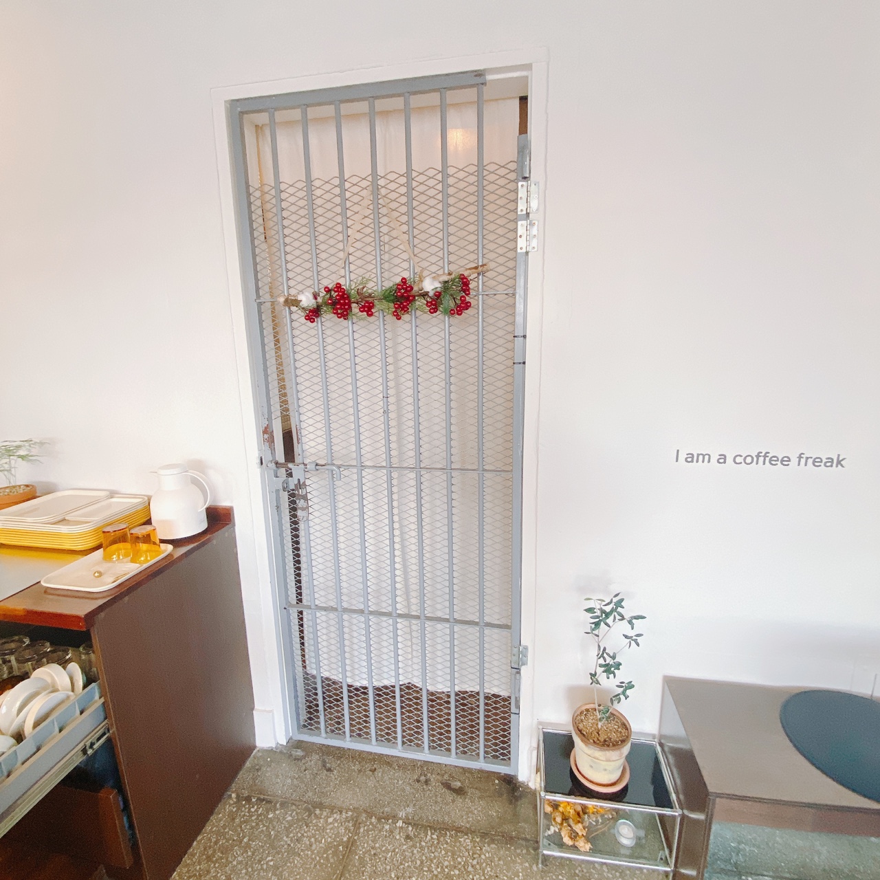 건물의 외벽을 흰색 페인트로 칠하여 과거 지구대였다는 느낌을 받기가 쉽지는 않으나 주변 곳곳을 들여다보면 지구대였던 흔적들을 발견하실 수 있습니다. 입구 앞에 있는 빈티지한 주황색 의자와 라바콘도 그의 흔적이지만 건물 내부에도 화장실이었던 문짝 그대로와 관계자 외에는 들어갈 수 없었던 철문도 지구대였던 흔적들입니다. 지구대를 개조한 카페 건물답게 구석구석 포인트로 잘 살려놓았다는 인상을 받았습니다.