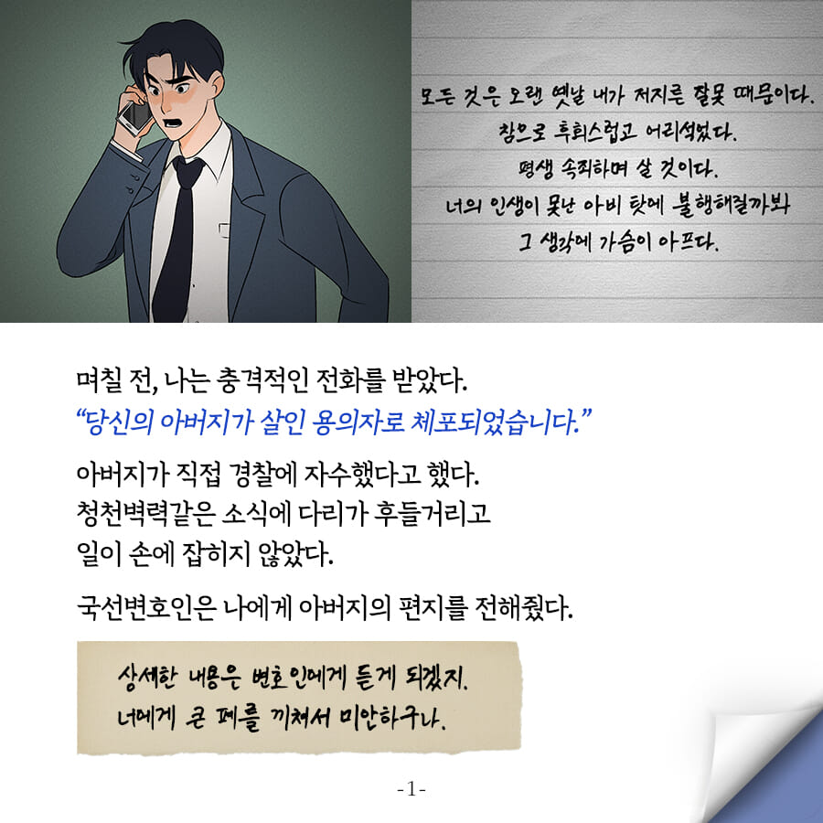 구라키 다쓰로의 자백을 필두로 시라이시 겐스케의 아내와 딸은 공개재판을 열기로 하지만 그의 딸 미레이는 구라키 다쓰로가 자백을 했음에도 불구하고 사건의 진상을 이해하기가 힘들었습니다. 피의자는 시라이시의 압박으로 인해 살해를 범했다고 말했는데 아무리 생각해도 그의 아버지인 시라이시는 그럴 사람이 아니었기 때문입니다. 사건의 의문점을 품은 사람은 미레이뿐만이 아니었습니다. 구라키 다쓰로의 아들인 구라키 가즈마도 미레이와 같은 생각이었습니다. 남에게 피해가 가는 것을 지독히도 싫어하던 아버지가 막무가내로 누군가를 살해할 사람이 아니라는 생각이었습니다.
